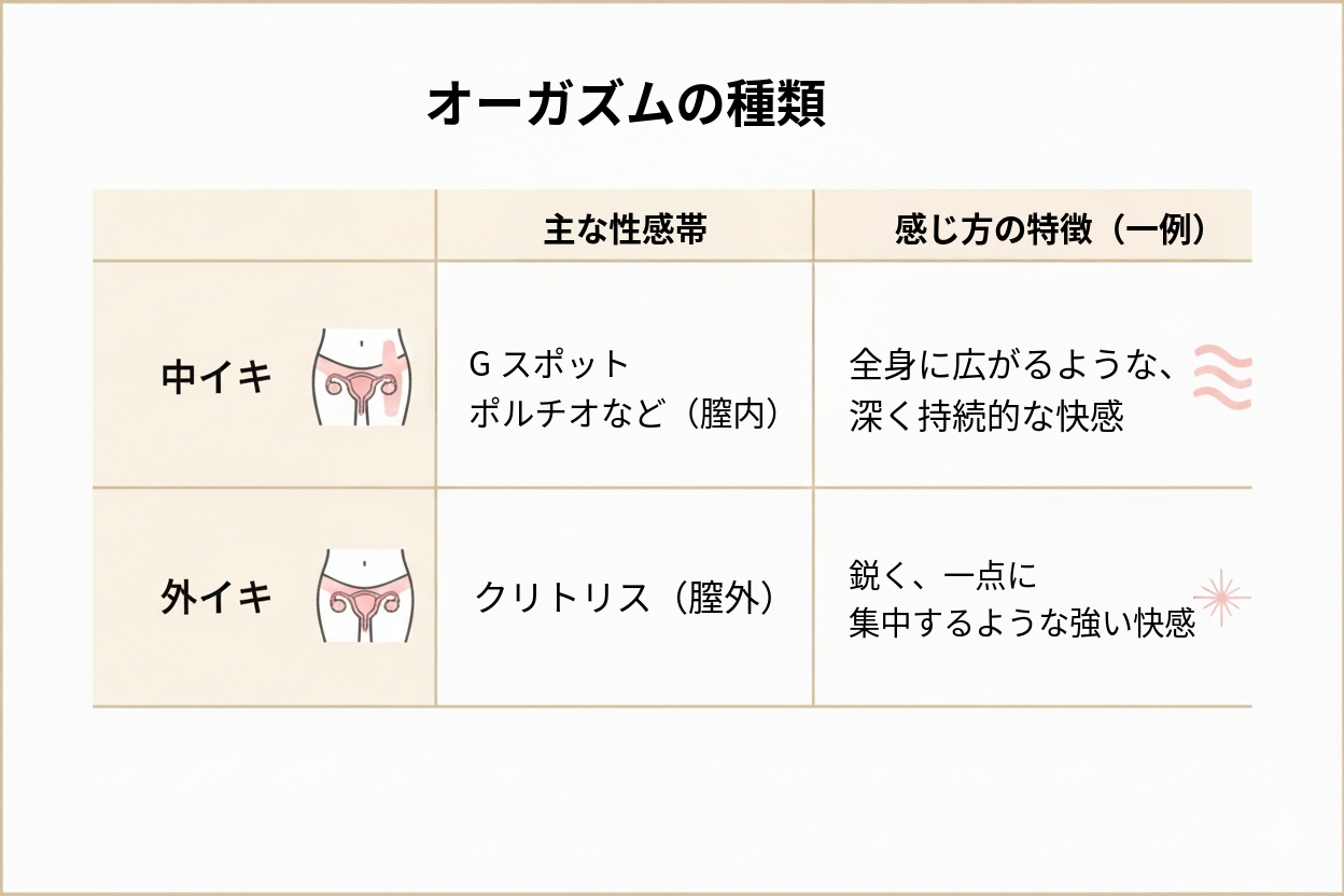 どちらが良い・悪いというものでは全くありません。「中イキできなければいけない」という思い込みは、かえってプレッシャーとなり、オーガズムを遠ざける原因にもなります。まずはオーガズムの形には多様性があることを知り、ご自身の身体の反応を大切にしましょう。